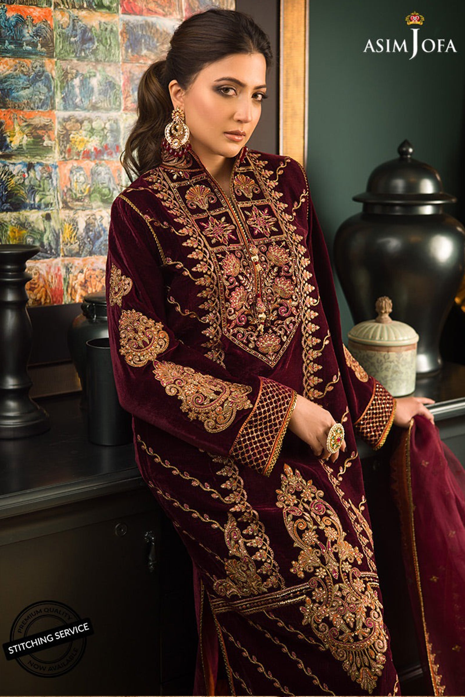 CF1113 Asim jofa Winter Embroidered Velvet Dress With Organza embroidered Dopata